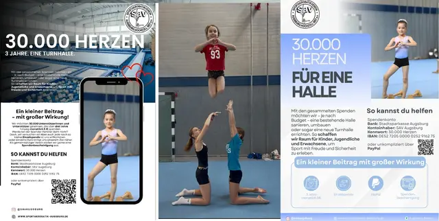30.000 Herzen, 3 Jahre, eine Turnhalle – hilf mit, für eine sportliche Zukunft unserer Kinder" Wir suchen 30.000 Spenderinnen und Spender, die drei Jahre 5 €/Monat spenden. Ein kleiner Beitrag – etwa so viel wie ein Getränk oder eine Packung Zigaretten – mit großer Wirkung. Sei ein Teil dieser einzigartigen Aktion, die ab 1.12.2025 startet und über drei Jahre laufen wird. „Die Idee hat sich in den letzten Monaten entwickelt“ so Alexander Baur, 1. Vorsitzender des SAV Augsburg Hochzoll. „Auf den...