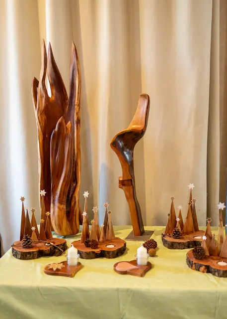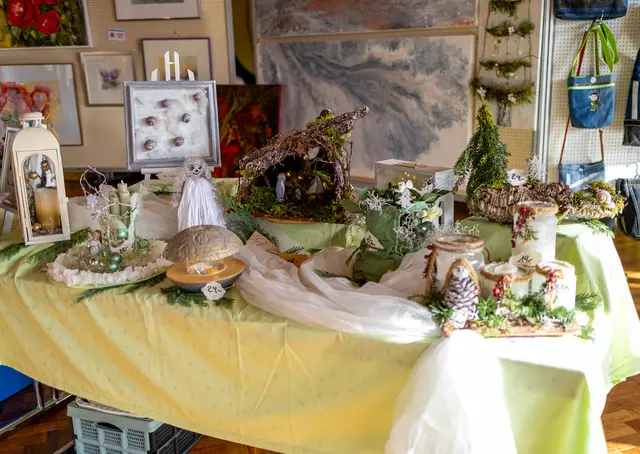 Unter der Leitung ihrer Vorsitzenden Christa Müller präsentierten 24 Hobbykünstlerinnen und Hobbykünstler nicht nur ihre liebevoll handgefertigten Werke aus den Bereichen Malerei und Zeichnung, Genähtes, Fotografie, Holz- und Filzkunst, Töpferei, Dot Painting, handgefertigte Krippen und Krippenfiguren, Dekoration und Schmuck, sondern zeigten vor Ort auch ihr handwerkliches Können.