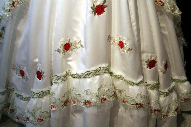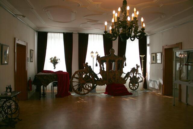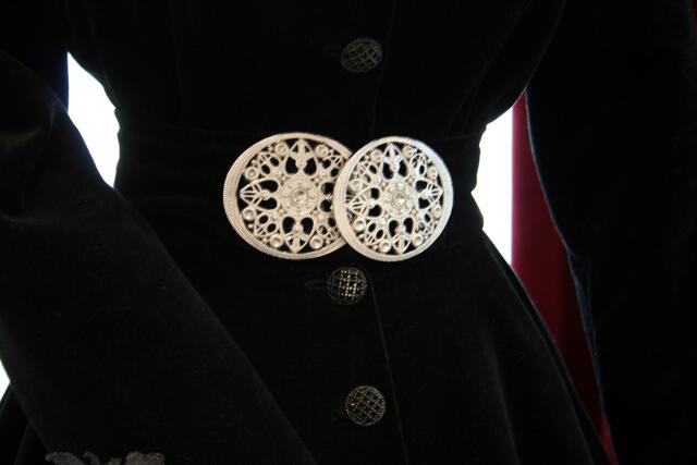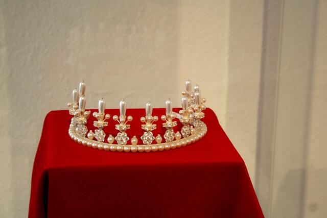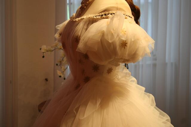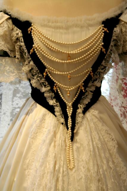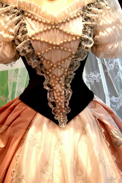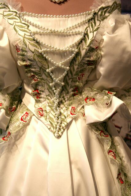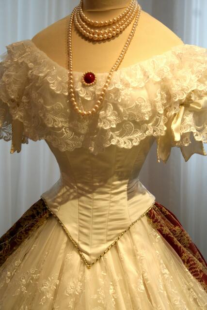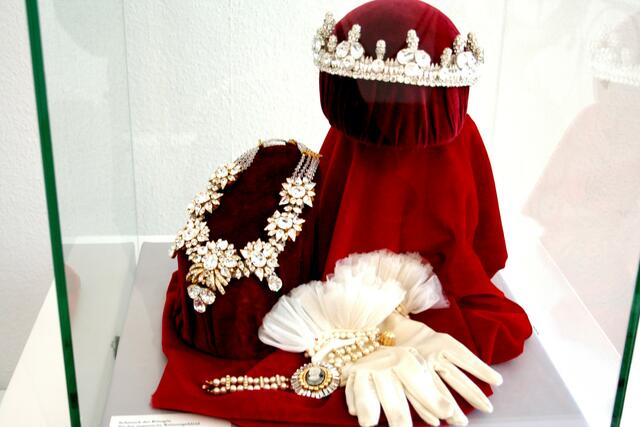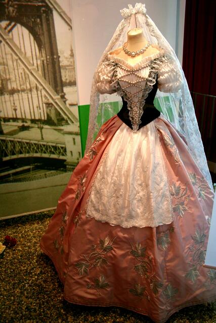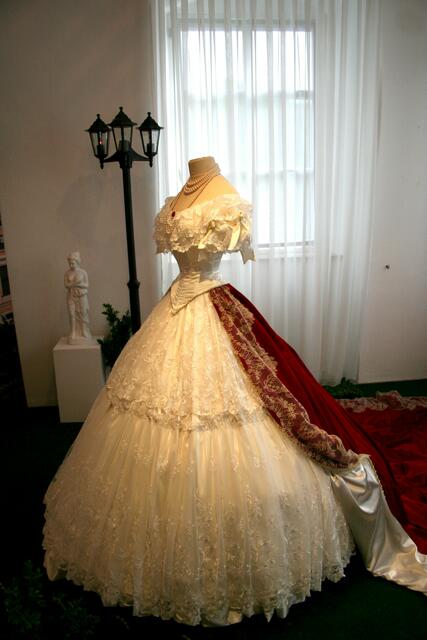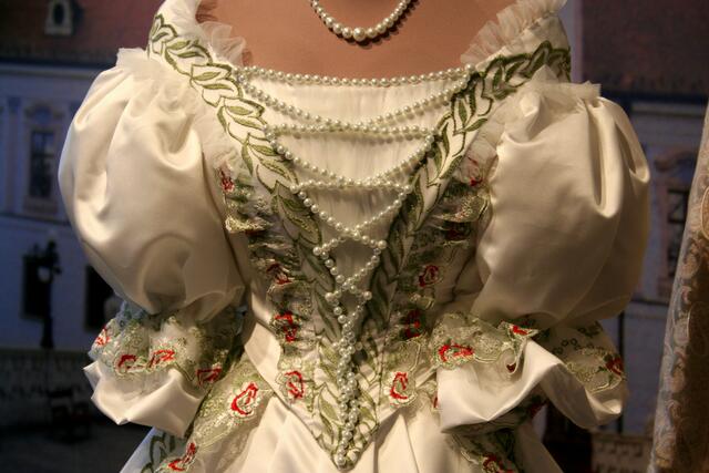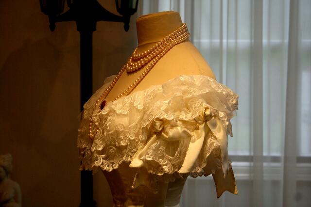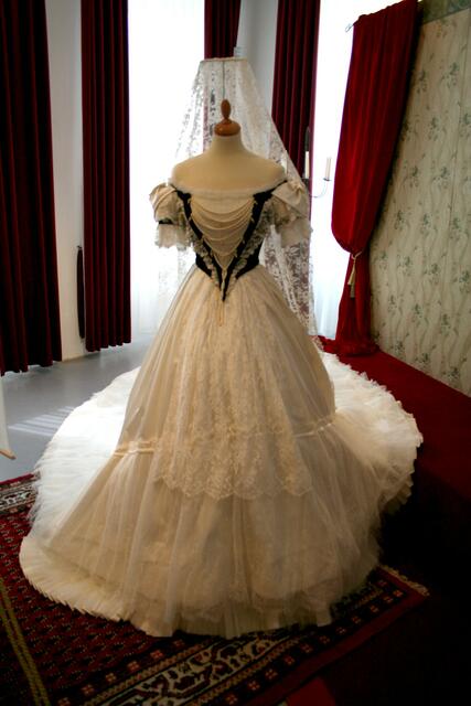 Da noch zu ihren Lebzeiten viel Prunkgewänder umgearbeitet oder vernichtet wurden zeigt die Ausstellung Replikate von Kleidern der Kaiserin.