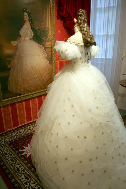 So kann man auch die gertenschlanke Taille der Kaiserin von weniger als 50 Zentimetern bewundern.