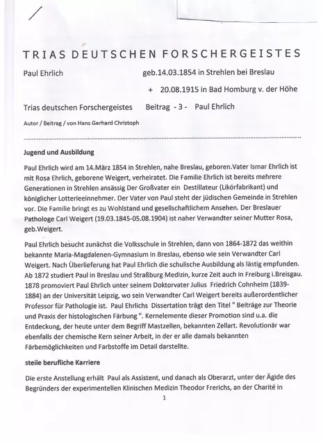 Paul Ehrlich, geb. 14.03.1854 in Strehlen bei Breslau, verstorben am 20.08.1915 in Homburg v.der Höhe .....