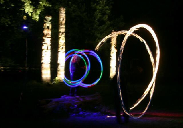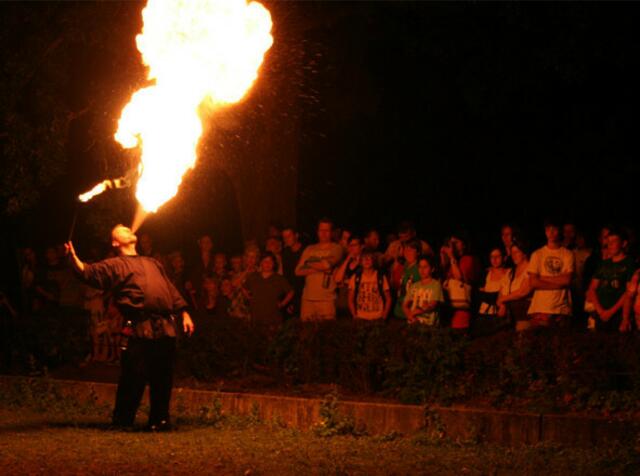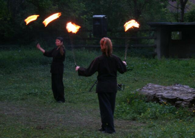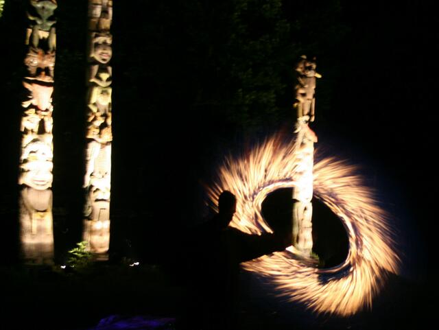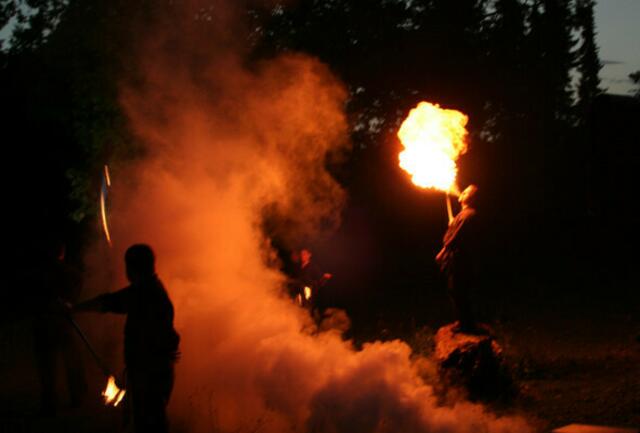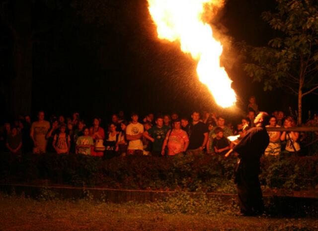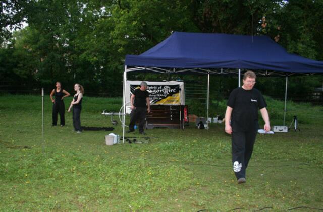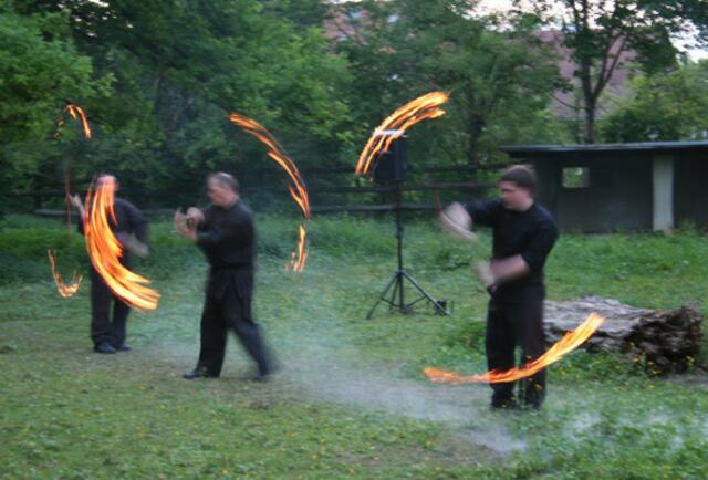 Es war so heiß das selbst das Stromkabel beim Lichtstrahler des Zoos ausfiel und uns kurz vor dem dritten Auftritt noch ein paar kleine Probleme bereitete, da wir dort unseren Showlaser und unsere Soundanlage angesteckt hatten. Das Publikum unterstütze uns in dieser kurzen Phase mit Gesang, jedoch waren sie dann wieder froh das sie nicht den ganzen Auftritt lang singen mußten und sich nach ca. 10 min. wieder ganz auf unsere spektakuläre Feuershow konzentrieren konnten.