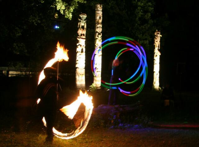 Nun konnte der erste Auftritt statt finden und das Publikum war begeistert von der Feuershow und den wilden Indianerponys.