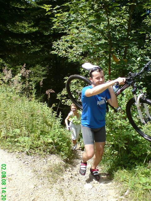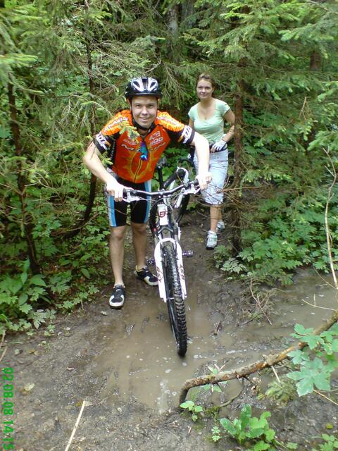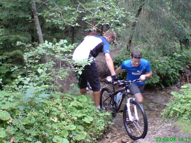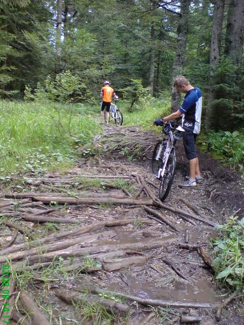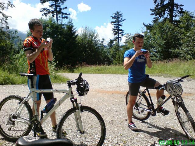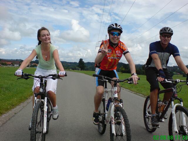Am Samstagmorgen in aller Früh machten wir uns mit dem Zug auf den Weg nach Bad-Tölz. Hier starteten wir, bei endlich aufklarendem Wetter unseren harten Weg auf den Gipfel. Bis nach Benediktbeuren ging es noch relativ leicht und flott, da überwiegend flache Passagen vor uns lagen. Als wir jedoch dann den Weg Richtung Gipfel einschlugen (geplant war den Blomberg zu erklimmen), war allen schnell klar: "Wir hatten zu wenig trainiert!" Obwohl die Wege durch den nächtlichen Regen teilweise recht abenteuerlich waren (siehe Fotos) schafften wir es tapfer bis auf den Gipfel (allerdings nicht direkt den Blomberg), wo uns Speiß und Trank auf der Alm für die Strapazen entlohnten. Wir hatten uns zwar etwas verfahren (der Gipfel des Blombergs war einfach nicht zu finden), aber es hat trotzdem viel Spaß gemacht und eine Hütte haben wir trotzdem gefunden. Frisch gestärkt ging es dann auf die rasante Abfahrt Richtung Arzbach. Auf dieser Abfahrt gingen dann mit einigen von uns die Pferde durch, so dass wir leider einen Verletzten zu beklagen hatten. Es waren aber "Gott sei Dank" nur äußerliche Blessuren, die im Krankenhaus von Bad-Tölz gut versorgt wurden. Spät am Abend ging es dann zurück nach Augsburg, und wir waren alle hundemüde aber glücklich!!!