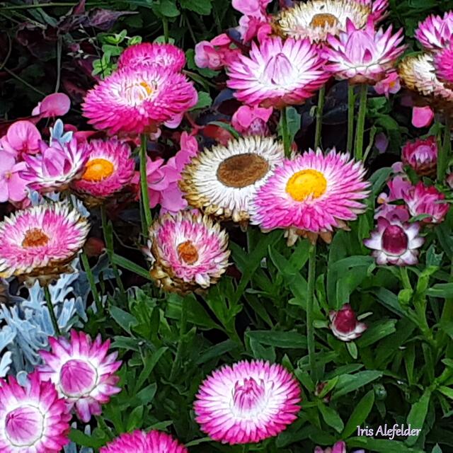 Eine Vielzahl von Strohblumen im Bot. Garten von Augsburg.