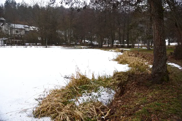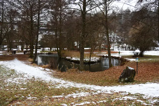 Bad Endbach ist bekannt für sein Thermalbad und das Heilwasser aus der Quelle. Das gehaltvolle Wasser zum Trinken eignet sich sogar als Brauwasser, wie ein Schild amtlich kundtut. Wer es testen möchte, kann an einer Bierwanderung teilnehmen: https://tag-u.de/bierwanderung-bad-endbach/ Derzeit liegt der Bad Endbacher Kurpark allerdings im Winterschlaf und "El Nino" auf dem Ententeich schaut über zugefrorenes Wasser. Es ist ein tröstlicher Gedanke, zu wissen, das er nicht friert. Er ist eine...