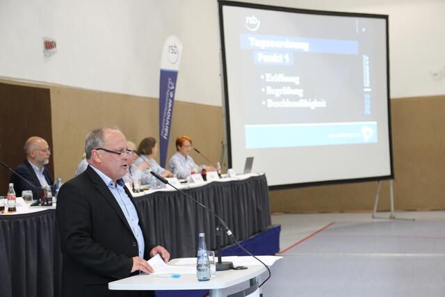Der Vorsitzende (Sportpolitik) Ulf Meldau eröffnete um kurz nach 18:00 Uhr den Sporttag und begrüßte die Delegierten und Ehrengäste. Nach einem kurzen Hinweis auf Foto-, Film- und Tonaufnahmen stellte er die ordnungsgemäße Einladung zum 24. Sporttag sowie die Beschlussfähigkeit der Versammlung fest und hatte gleich zu Beginn eine Bitte an die Delegierten.