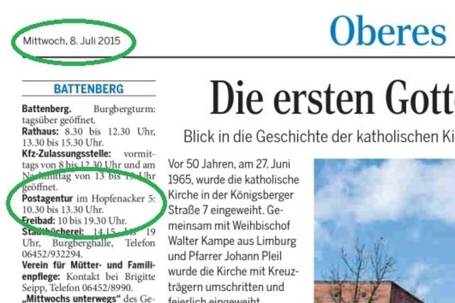 - Die Postagentur in Battenberg: Ein weiteres Beispiel vom fehlenden Interesse Deutsche Post AG an ihren Kunden.