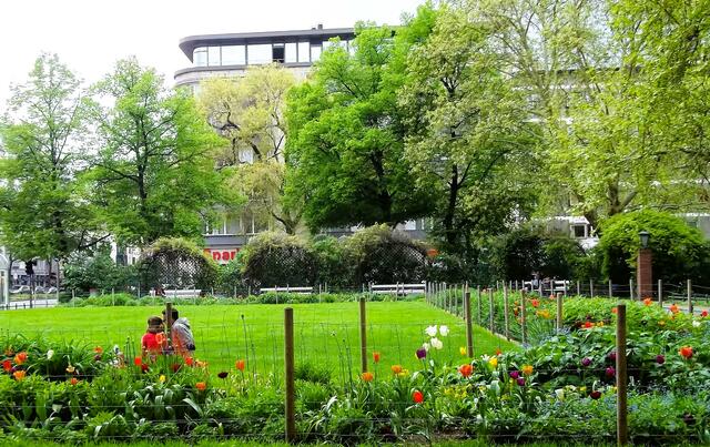 1926 wurde der Platz in einen Garten- und Erholungsplatz umgewandelt, der den Stadtbewohnern die Atmosphäre eines Hausgartens vermitteln sollte. Rings um die Rasenflächen mit den Blumenbeeten befinden sich laubenartige Sitznischen, in denen sich Spaziergänger, aber auch die Angestellten der naheliegenden Büros und vom Shopping ermüdete Touristen gern mal ein paar Minuten ausruhen. Anlässlich des 750-jährigen Stadtjubiläums wurde er ein Gartendenkmal.