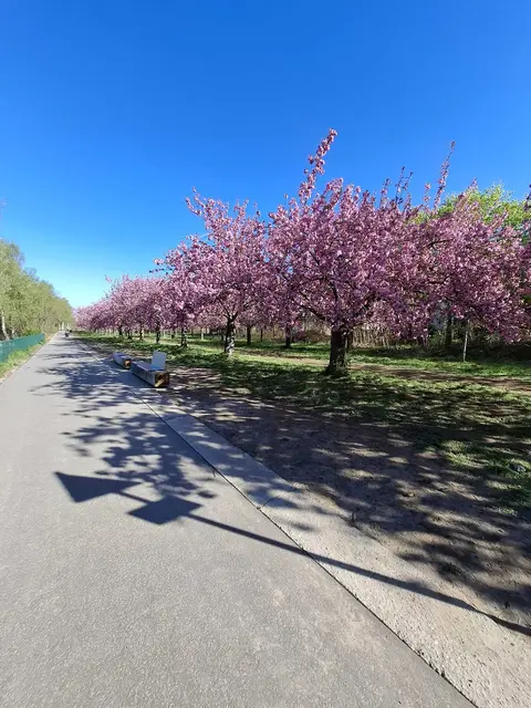 Nach dem Mauerfall rief ein japanischer TV-Sender zu einer Spendenaktion auf. 140 Millionen Yen, etwa 1 Million Euro, kamen damals zusammen. Das reichte, um 9000 Japanische Kirschen in Berlin und Brandenburg pflanzen zu lassen - ein wunderbares Zeichen der Verbundenheit der beiden Länder . 1100 dieser Bäume bilden auf dem ehemaligen Mauerstreifen zwischen Teltow und Berlin Lichterfelde-Süd Ende April einen etwa zwei Kilometer langen Tunnel aus rosa Blüten, der zahlreiche BesucherInnen anlockt.