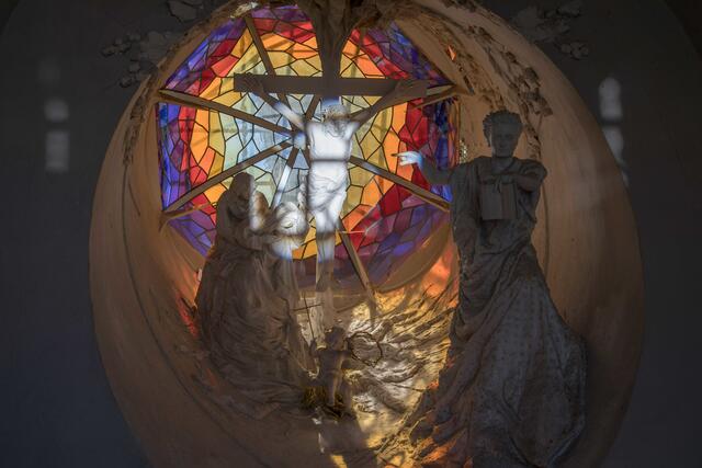 Das Interesse von Frau Kriesche wurde geweckt und man vereinbarte einen Termin für einen Besuch. Es wurde auch darüber gesprochen, daß es um die Mittagszeit, wenn die Sonne hinter der bleiverglasten schrägen Kuppel stünde, das Sonnenlicht auf die Kreuzigungsszene und noch viel weiter in den Innenraum strahlen würde. Es sei wie ein kosmisches Erlebnis.