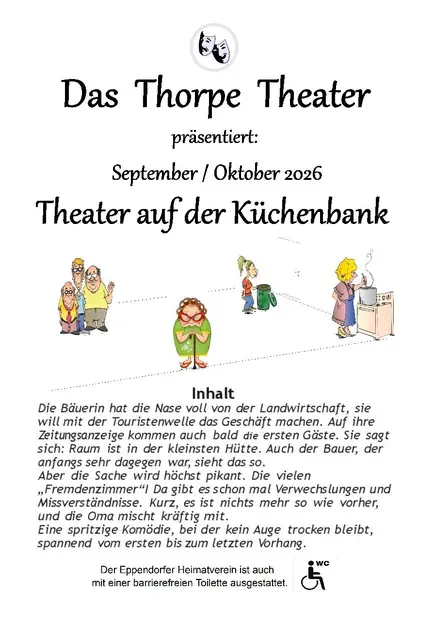 Bochum-Eppendorf. Das Thorpe Theater lädt im Herbst 2026 wieder zu vergnüglichen Stunden ein. Mit dem neuen Stück „Theater auf der Küchenbank“ verspricht das Ensemble beste Unterhaltung und turbulente Szenen. Der offizielle Kartenvorverkauf für die Theaterabende sowie für kommende Party-Highlights des Eppendorfer Heimatvereins startet bereits im Rahmen des Frühlingsfestes am 1. Mai. ​An drei Wochenenden im September und Oktober verwandelt sich die Bühne beim Eppendorfer Heimatverein wieder in...