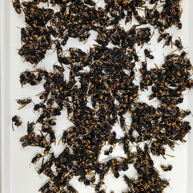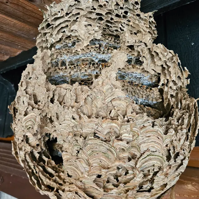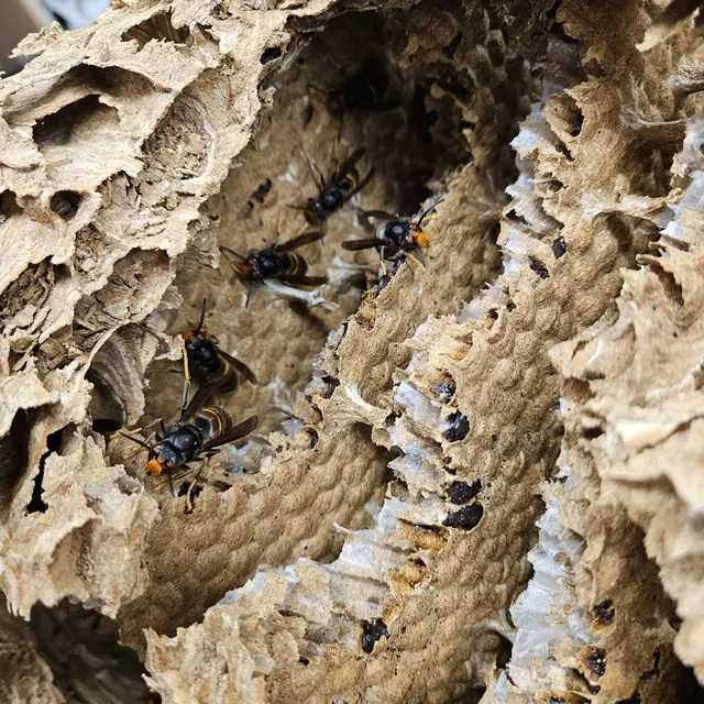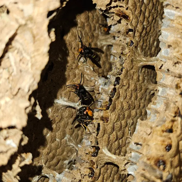 Marc, unser Imker aus Leidenschaft, hat vor Kurzem ein Nest der Asiatischen Hornisse entdeckt und zur Untersuchung in seine Werkstatt gebracht. Das Nest hat den Transport erstaunlich gut überstanden. Doch nach etwa zehn Minuten im Warmen zeigte sich die erste Hornisse - und nach und nach folgten immer mehr.