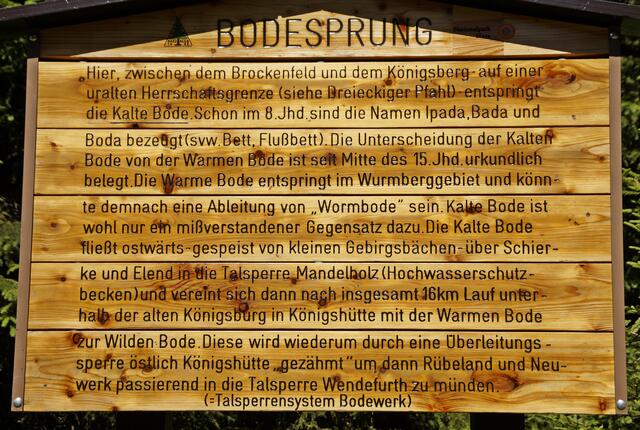 Hinter der Schutzhütte Dreieckiger Pfahl gelangten wir auf den ehemaligen Kolonnenweg der DDR Grenztruppen. Auf diesem mit Betonplatten ausgelegten Weg kamen wir auch an dem Bodespring vorbei. An dieser Stelle befindet sich das Quellgebiet der Kalten Bode. Von Quellwasser war hier allerdings nichts zu sehen. Kurz hinter dem Bodespring mündet der, vom Torfhaus kommende Goetheweg, auf den Kolonnenweg. Aus dem Kolonnenweg wurde jetzt der Goetheweg. In diesem Bereich war jetzt die größte Steigung auf dieser Wanderung zu bewältigen. Nach der Überwindung der Steigung wanderten wir auf den, nach der Wiedervereinigung neu angelegten, Neuen Goetheweg weiter. Dieser verläuft parallel neben den Gleisen der Brockenbahn und endet an der, von Schierke kommenden, Brockenstraße. Auf der asphaltierten Brockenstraße ging es nun hinauf zum Brockengipfel.