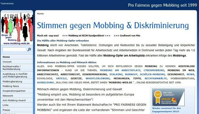 Der Bürger Klaus-Dieter May ermöglicht allen Verantwortlichen - weltweit erkennbar über den "Berliner Wegweiser" (http://www.mobbing-web.de) - die Gewalt gegen Menschen, Mobbing, zu ächten.