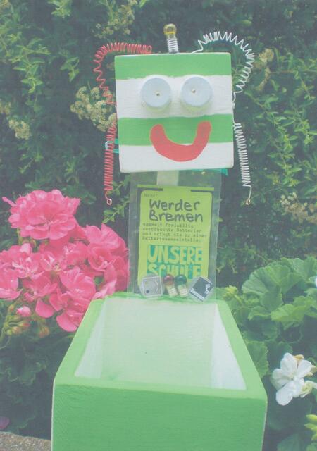 - Bilddokument aus der Schule Mahndorf in Bremen: Am 8. August 1988 erhielten alle Schulanfänger eine Batteriesammelkiste ("Bremer Schulkiste")