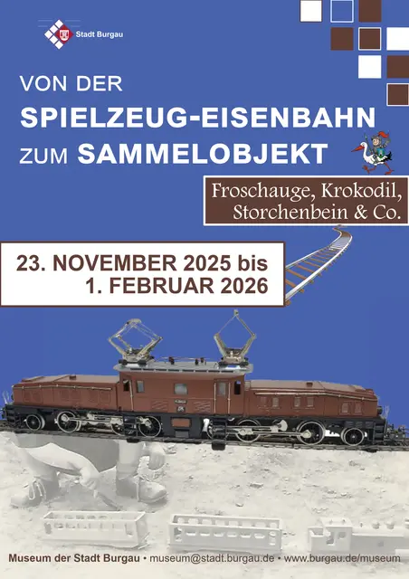 Sonderausstellung im Museum der Stadt Burgau vom 23. November 2025 bis 1. Februar 2026: „Von der Spielzeug-Eisenbahn zum Sammelobjekt. Froschauge, Krokodil, Storchenbein & Co.“