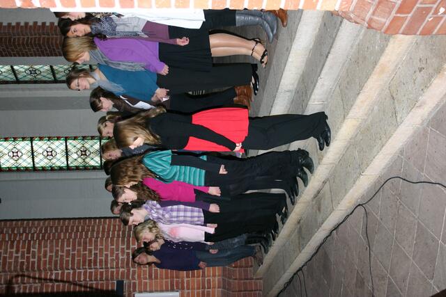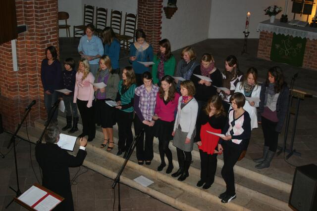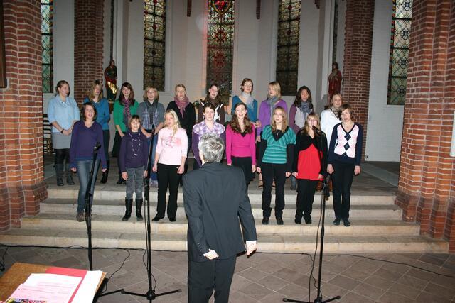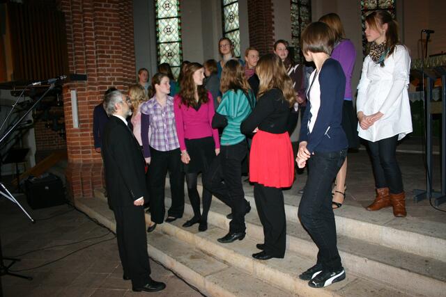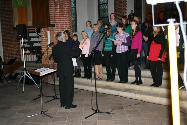 Vor dem Chor, Pastor Andreas Kiebeler, stets in Bewegung und scheinbar bestrebt den Chor mit beiden Händen musikalisch zu tragen. Der Chor achtzehn Mädchen, sorry junge Damen zwischen 13 und 18 Jahren, tolle Stimmen. Auch die Solos konnten da beeindrucken, wissend wenn man selbst in einem Chor singt, dass es schon einen Unterschied macht, innerhalb des Chors zu singen oder als"Leadsänger" zu fungieren. Besonders gefiel bzw. auf den Chor gut abgestimmt fand ich die Liederauswahl.