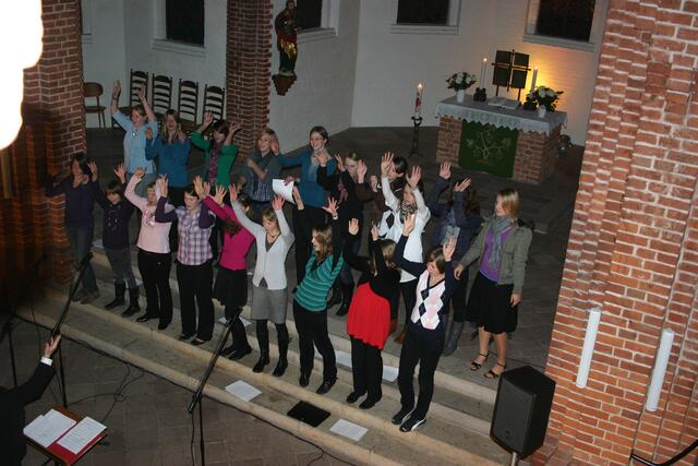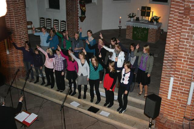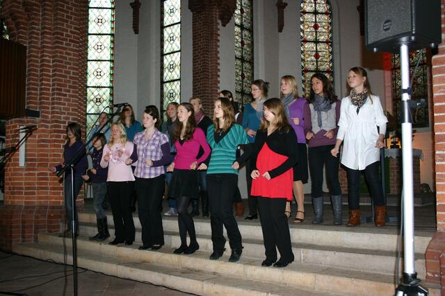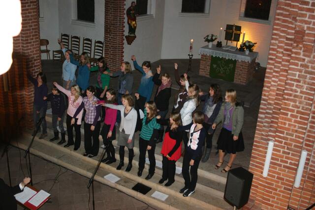Mit 180 Gottesdienstteilnehmern war denn auch die Chance gegeben gemeinsam zu singen, wie z.B bei dem Song: May the Lord send angels. Je nach eigenem musikalischen Hintergrund fühlte man sich besonders angesprochen, so erging es jedenfalls einigen Zuhörern bei: Thank You for the music (ABBA) und dem absoluten "Klassiker" : O happy Day .