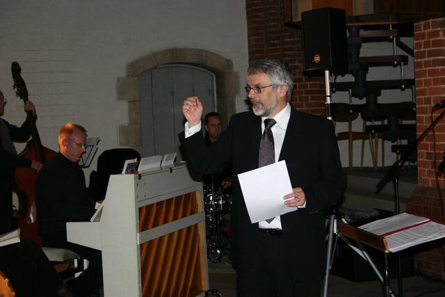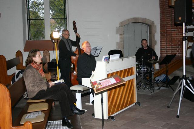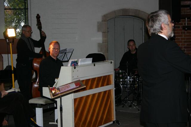 Ein wirklich gelungener Vortrag, Pastor Kiebeler, auch Dank der instrumentalen Begleitung von Elkmar Winter, Klavier; Günter Kellmer, Kontrabass; und Johannes Doll am Schlagzeug.