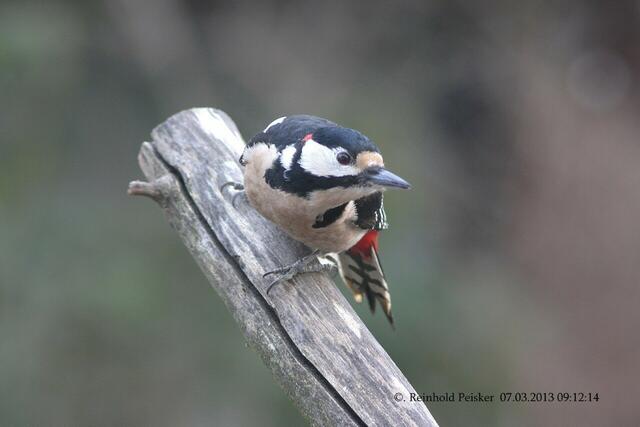 Hier mal drei Aufnahmen vom Buntspecht (m) ,die ich am 7.3.2013 bei uns im Garten ablichten konnte.