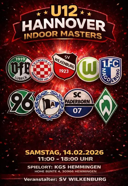 Mit dem Sieg des SV Werder Bremen endete am vergangenen Samstag das erstmals ausgetragene U 12 Hannover Masters des SV Wilkenburg. Im Finale gewann der Nachwuchs des Bundesligisten gegen die überraschend starke Mannschaft rot des Gastgebers SV Wilkenburg mit 3:2 nach Siebenmeterschießen und sicherte sich damit den ersten Turniersieg dieser Veranstaltung. Platz 3 sicherte sich der SC Paderborn 07 mit einem 1:0 im kleinen Finale gegen den 1.FC Magdeburg. Fünfter wurde der DSC Arminia Bielefeld...