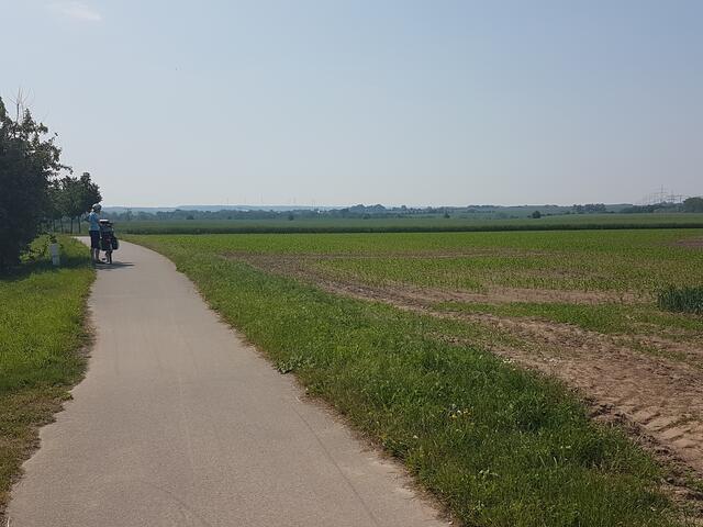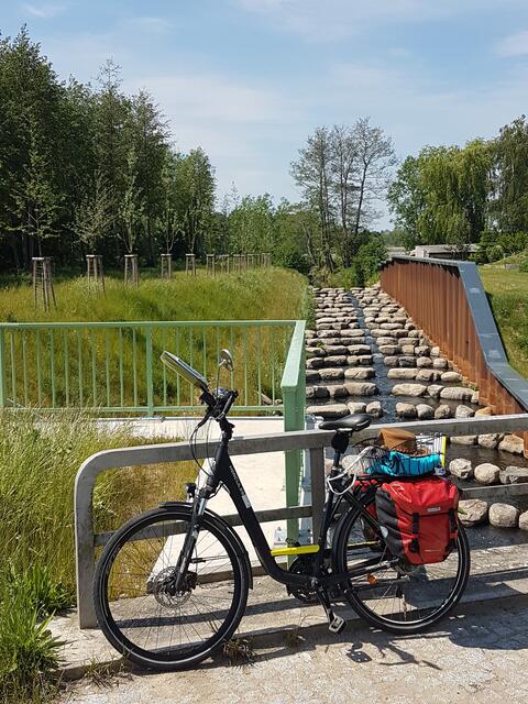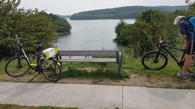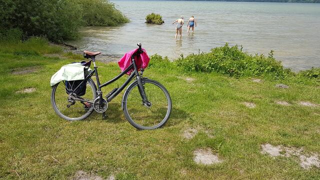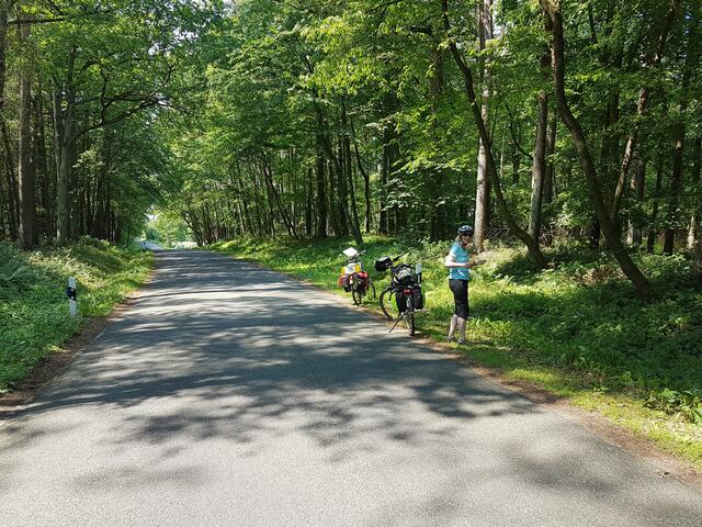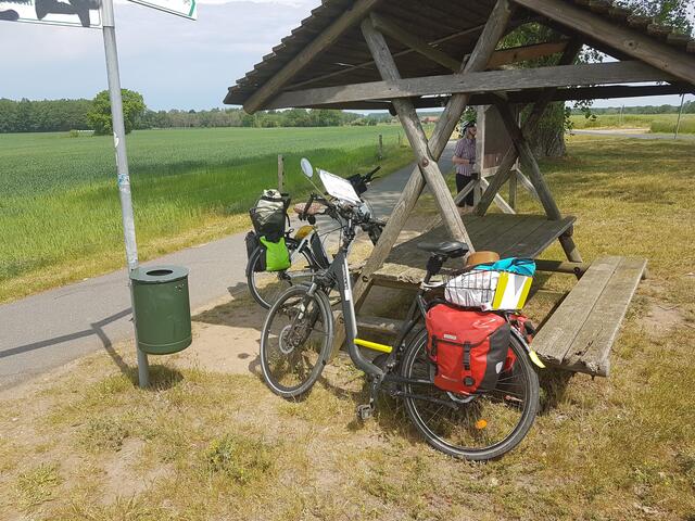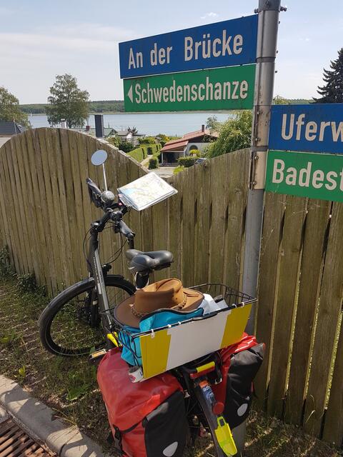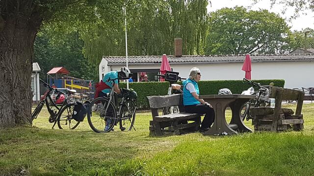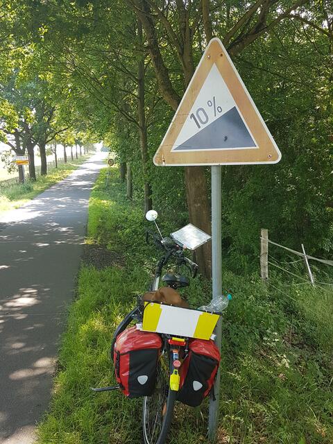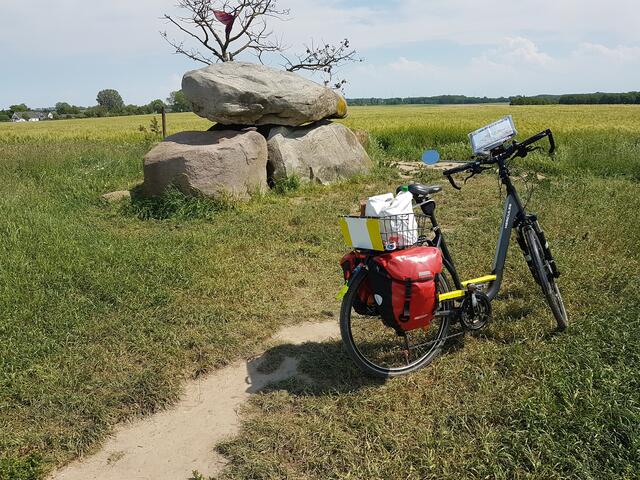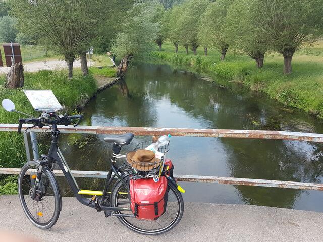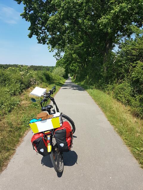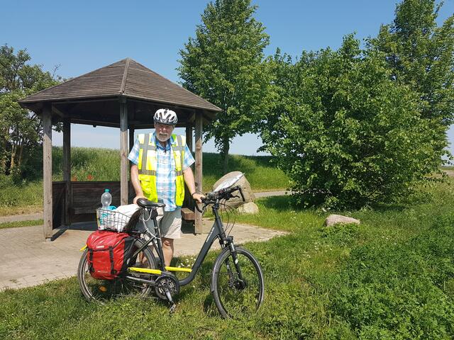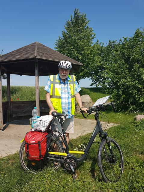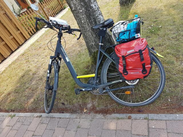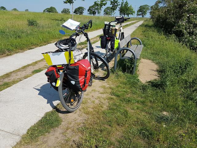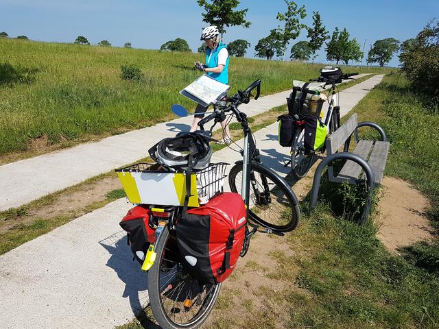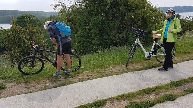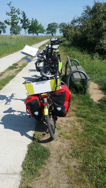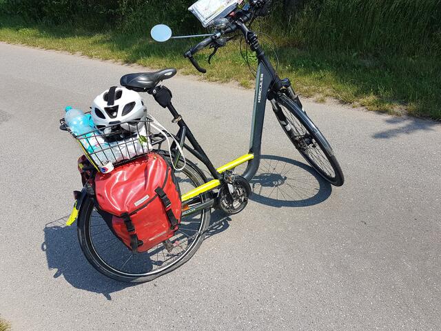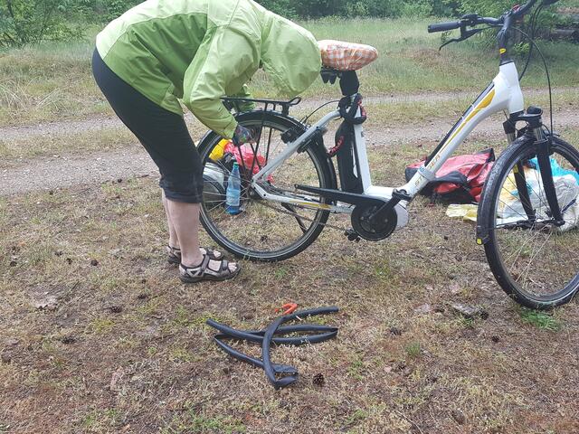 Reifenpanne Reinhard, hinten (wie fast immer!) durch kleinen Pflanzendorn, trotz Reifen Schwalbe Marathon Plus, neuen Schlauch eingezogen, weiter geht's.