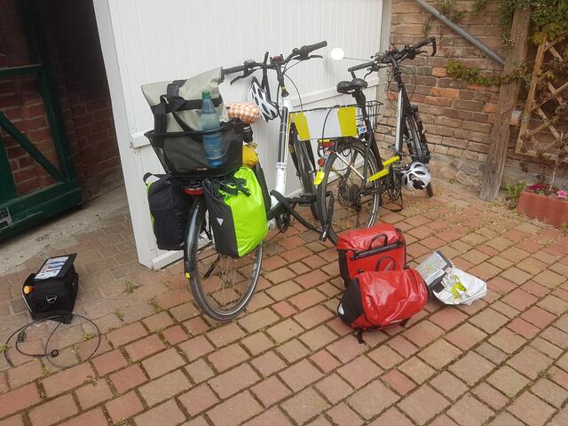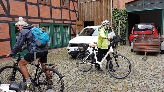 ADFC-Pannenhilfe bringt Ulla & Reinhard samt Fahrräder nach Schwerin ins Hotel, 30 km. Zum zweiten Mal Panne /Pannenservice auf dieser Radtour, also:
