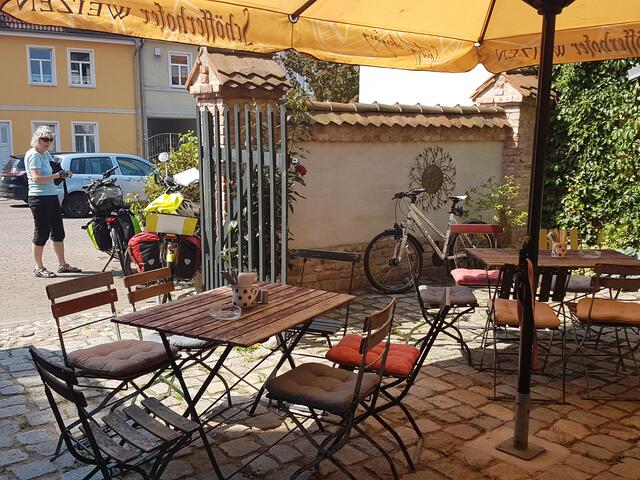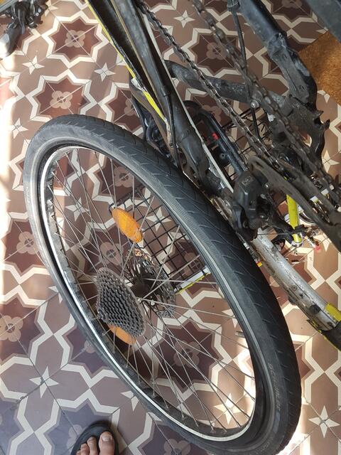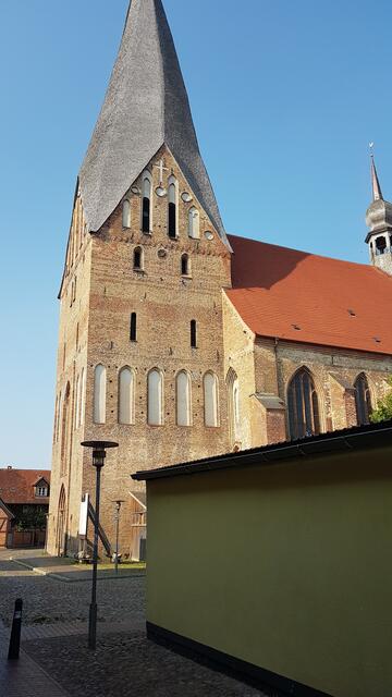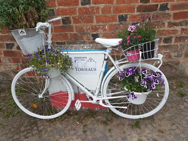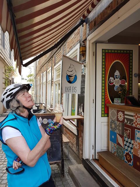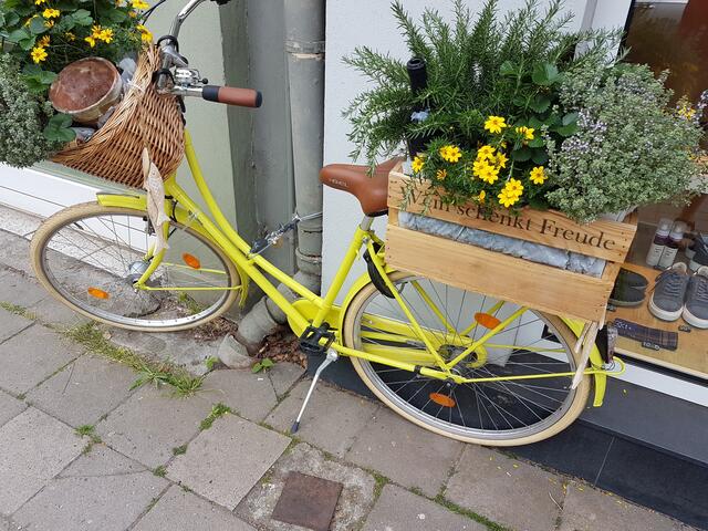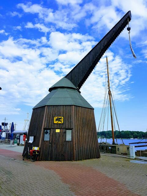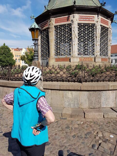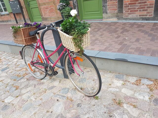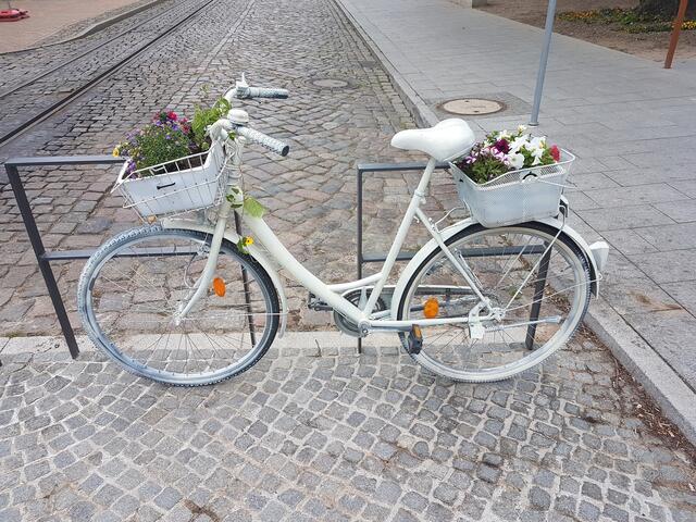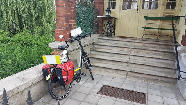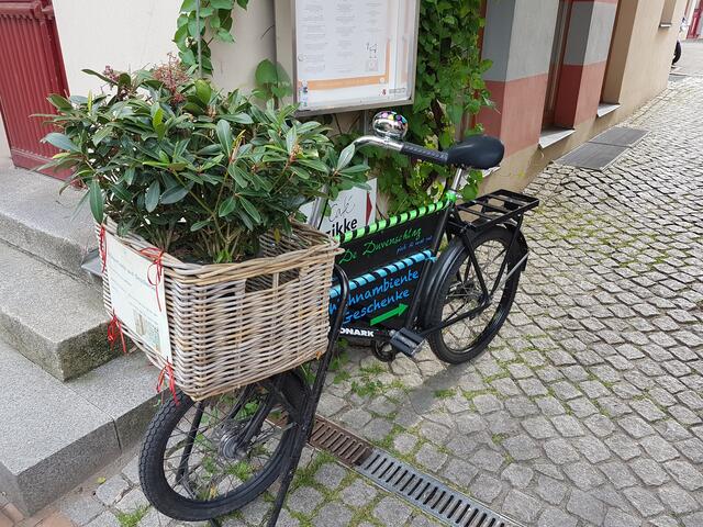 In der Altstadt von Schwerin, bei Ben's Fahrradladen, Burgstraße 18, genau das passende Vorderrad gefunden: Gekauft, eingebaut, wieder losgefahren.