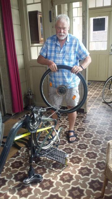 Reifenpanne Ulla: natürlich hinten, natürlich mitten in der Botanik. Maßnahme: Neuen endlichen Schlauch eingebaut. Nach kurzer Zeit hinten wieder platt: