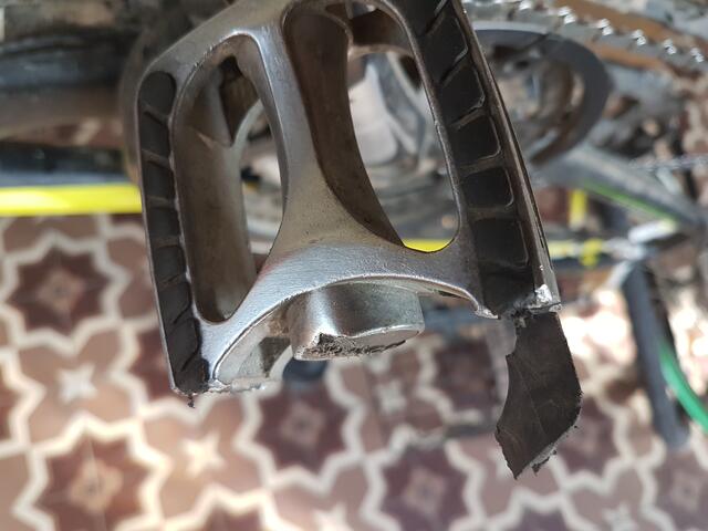Pedalteil rechts abgebrochen, noch fahrfähig, daher neues Pedal zu Hause (€ 9,95),