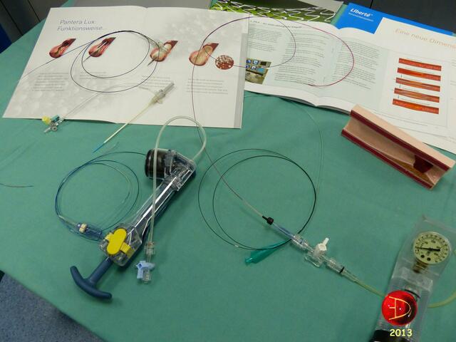 Dann mit einem 'Ballon' die Ader etwas geweitet und zu guter letzt wurde der Stant an der Stelle plaziert.