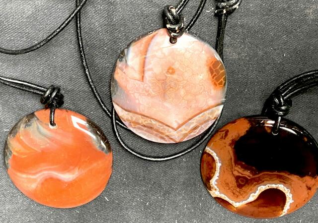 On the other side of the Upper Rhine Rift Valley in the Black Forest, the red-flaming silica has also crystallized into beautiful agates due to mountain pressure. However, really beautiful finds are still rare and so the gemstone industry in Idar-Oberstein imports large quantities of agate from Brazil, Botswana, China and many other regions of the world. We brought many of our particularly colorful, beautiful specimens with us from China for our small jewelry production. Imaginative names translated into English such as: dragon veins agate, dragon eyes, scales green aventurite, reptile jasper and others may remind you of this or that dragon story.