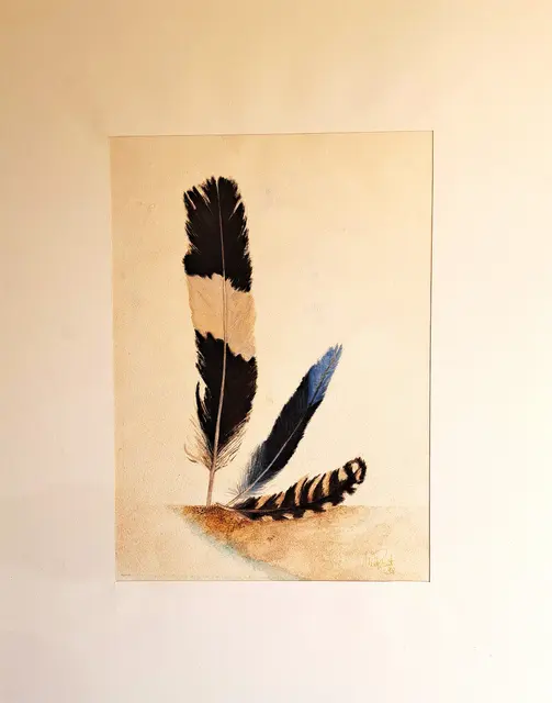 Monica hat mir vom Rabenvogel erzählt, der sie in Ihrer Stadtwohnung in Augsburg regelmäßig besucht, wenn sie in den Hof hinuntergeht. Er lässt sich regelmäßig füttern und dann ist er wieder bis zum nächsten Kontakt weg und ganz für sich. Vielleicht bleibt eine Feder.