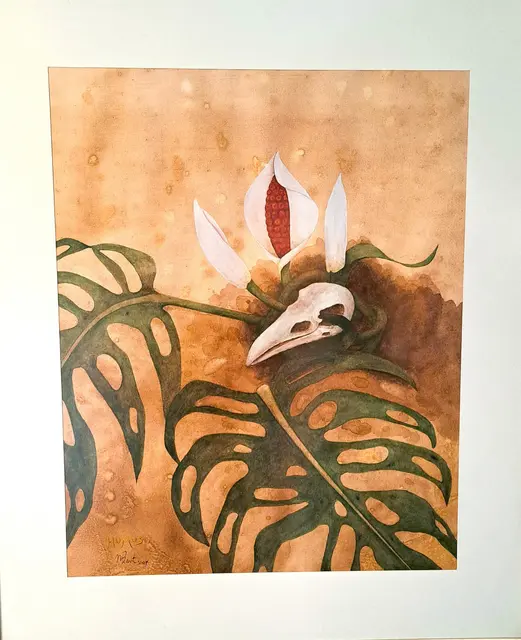 Ich habe Monica gefragt, ob Ihre Bilder etwas Melancholisches vermitteln sollen, wie bei der Commedia dell Arte im barocken Venedig, Totenschädel wie ein Memento Mori… sie sagte Vergänglichkeit passt besser zu ihr.