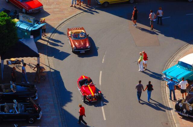 Die städtischen Museen wie auch der Münsterturm waren geöffnet: Ein Blick aus luftig-sonniger Höhe auf dieses beeindruckende Oldie-Panorama unten lohnte sich! Und die zahlreichen Exponate standen nicht etwa nur herum: nicht selten beantworteten stolze Eigentümer zahlreiche Fragen der Besucher, erläuterten bauliche Besonderheiten und führten ihren Augenstern auch einmal vor. Ein echtes Familienwochenende also, ein Samstag, da kleine und große Oldie- und Autofans ihrer Leidenschaft voll auskosten - und gemütlich auf einer Café-Terrasse Eis schlecken und Cappucino schlürfen konnten.