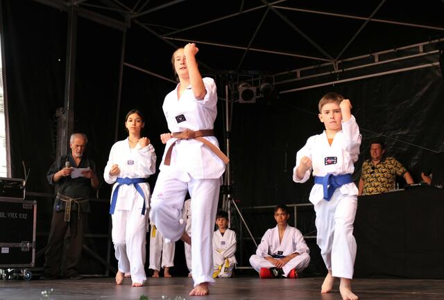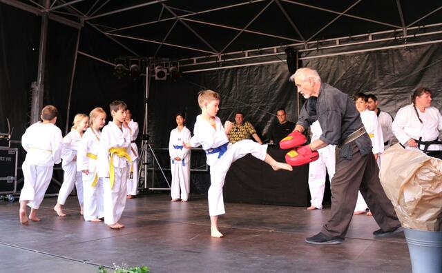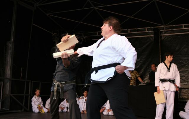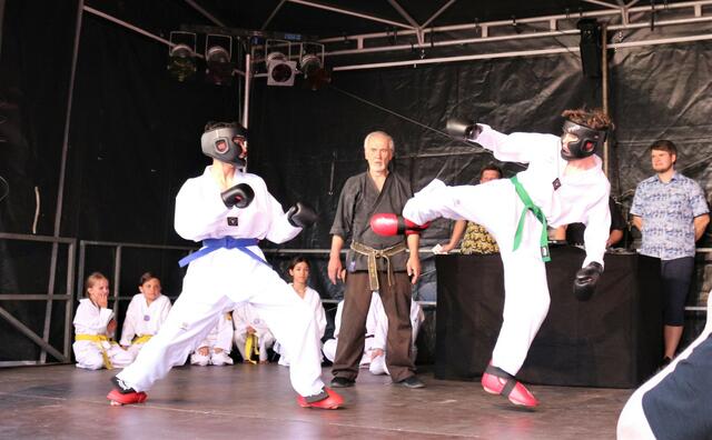 Eine halbe Stunde lang begeisterten die Kampfsportler mit einigen spektakulären Bruchtests, Selbstverteidigung, Freikampf und Formen die Zuschauer.
