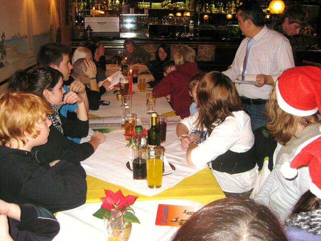 Zuerst wollte ich gar kein Weihnachtfeier machen, weil es mit viel Arbeit verbunden ist, aber dann fragten mich so viele wegen der Weihnachtsfeier, daß ich mich kurzerhand entschloß gleich drei Weihnachtsfeiern zu machen. Nämlich eine in Meitingen (19.12.), in Nördlingen (21.12.) und in Rain. Heute am 23. Dezember haben wir in Rain in der Pizzeria Castello unsere Weihnachtsfeier gemacht. Es war sehr schön und ich war froh es doch durchgezogen zu haben. Ich hatte die Geschenke besorgt, kam aber nicht dazu sie einzupacken, also orderte ich meine Mädchen es eine Stunde vorher für mich zu erledigen. Danach haben wir alle zusammen gegessen. Anschließend durften die Kinder ihre mitgebrachten Geschenke untereinander tauschen. Zum Schluss gab es von mir für alle ohne Ausnahme ein Geschenk zur Erinnerung an diesen wunderschönen Tag. Aber einige Schüler haben auch an mich gedacht und etwas zusammengelegt, um mir eine Freude zu machen. Darüber war ich sehr erfreut. Danach konnten wir im Billardsaal einige runden Billard spielen und den Abend ausklingen lassen. Hier meine Bilder von der Weihnachtsfeier der Kampfsportgemeinschaft Rain. Ich, die Rainer, Meitinger und Nördlinger Kämpfer wünschen allen ein gesegnetes Frohes Fest und ein gesundes und erfolgreiches Jahr 2010.