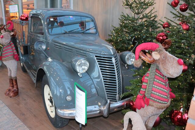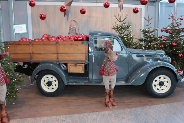 Oldtimer Pritschenwagen bringt die Weihnachtskugeln