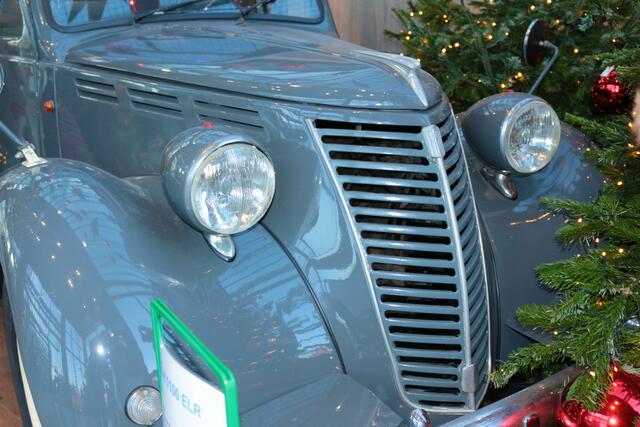 Gleich am Eingang beim Dehner in Rain habe ich diesen Oldtimer Pritschenwagen von Fiat (1100 ELR) fotografiert. Auf der Ladefläche waren rote Weihnachtskugeln.
