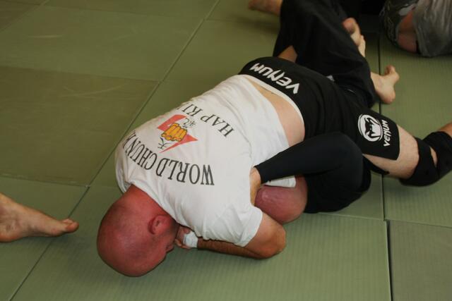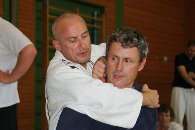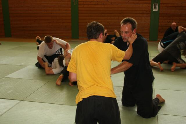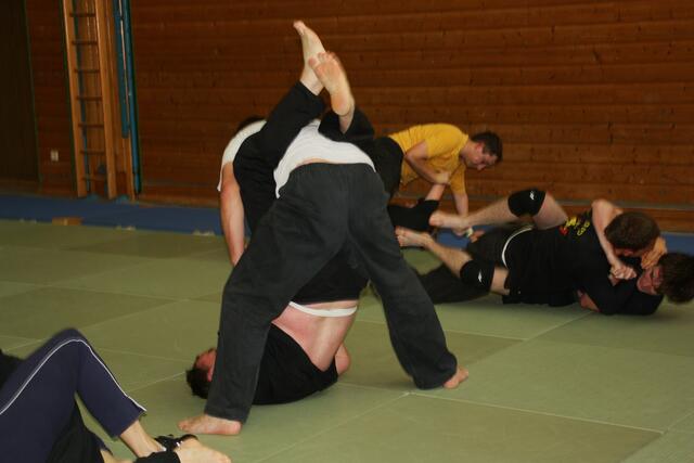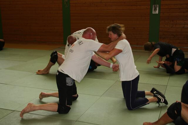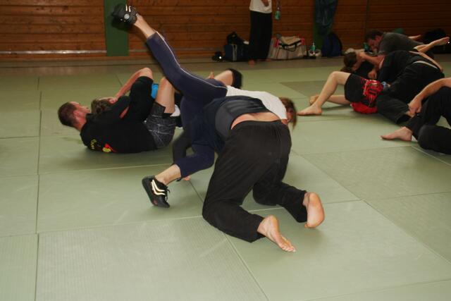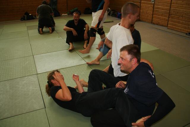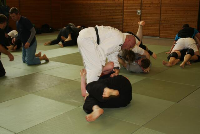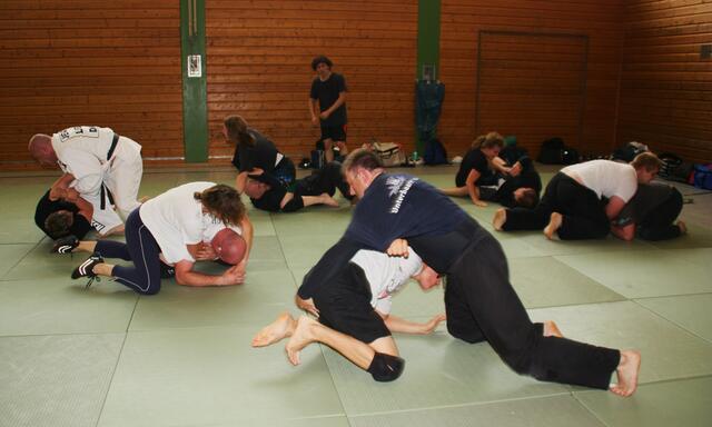 Es haben sich 30 Kampfsportler zu dieser Lehrgang angemeldet, darunter sechs Damen. Ein Schüler von mir der Bastian Weber der auch Hap-Ki-Do in Baar trainiert gab mir diesen Tipp und bat mich vorbeizukommen. Der zwei Tage dauernde Lehrgang ging Samstag und Sonntag jeweils vier Stunden, die Teilnehmer waren eifrig dabei.