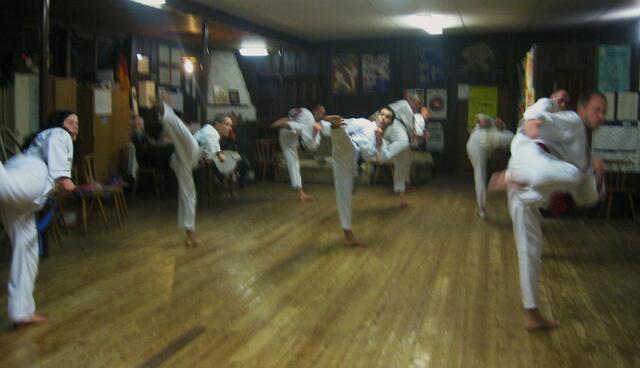 Immer den ersten Freitag im Monat ist Training für Schwarzgurte in Jettingen. Auch ich war am Freitag in Jettingen und habe zwei Schüler mitgenommen, nämlich Bastian Weber (Rain) und Vanessa Müller (Meitingen). Das Training dauert zwei einhalb Stunden. Es beinhaltet eine Stunde Taekwon-Do und ein einhalb Stunden Allkampf-Jitsu. Mein Meister, der Großmeister Jakob Beck 10. Dan Allkampf und 9. Dan Taekwon-Do freut sich immer wenn ich und einige Schüler zum Training vorbei kommen.