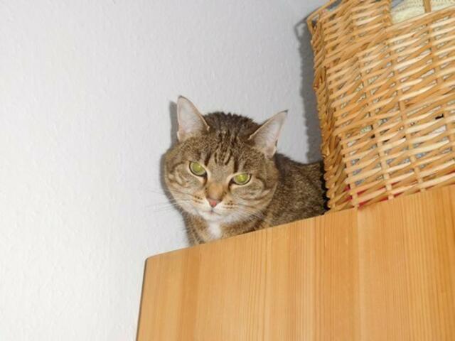 So einigten wir uns, daß sie ein neues Zuhause für mich suchte. Zufällig war die alte Katze einer Freundin meines Frauchen gerade gestorben, und sie erklärte sich bereit, mich aufzunehmen. Aber wie fremd roch das alles! Und zum Teil auch noch nach der alten Katze. Ich verkroch mich erstmal hinter die Heizung, ein Platz, der mir einigermaßen sicher schien. Meine neuen Menschen brachten mir auch mein Futter dorthin.