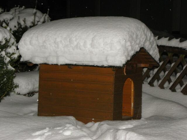 Ich traute meinen Augen nicht, als ich heute Morgen um 7:30 Uhr die Zeitung holen wollte. Mußte mir erst mal einen Weg durch den Schnee schieben, damit ich überhaupt raus konnte. Der Schnee ist ziemlich schwer.