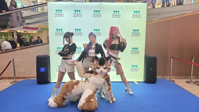 Das Meitinger Maskottchen „Luxxy“ begeisterte am Wochenende zusammen mit dem Huntrix-Trio aus dem Filmhit des Jahres 2025 „K-Pop Demon Hunters“ den Thüringen Park in Erfurt. Sie eröffnete das Unterhaltungsprogramm mit einem Auftritt, anschließend folgte ein Huntrix-Trio mit ihrer Tanzshow zu „How it's done”. Danach folgte ein Meet & Greet mit den wartenden Kindern. Bevor der Tanzworkshop mit ca. 60 Kindern begann, beendeten die Dämonenjägerinnen den ersten Teil mit der Hitsingle „Take Down”....