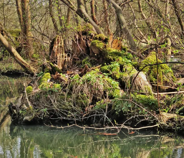 Am Uferrand regen moosbewachsene Wurzeln und Baumstämme die Fantasie an und nehmen uns mit in das Reich der Märchen.
