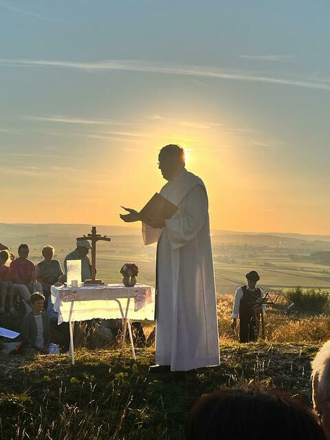 Seit 1999 besteht diese Tradition auf dem Rollenberg bei Harburg-Hoppingen und seither erfreut sich die von Anbeginn beliebte Bergmesse vor der Haustüre immer größer werdendern Zuspruches.