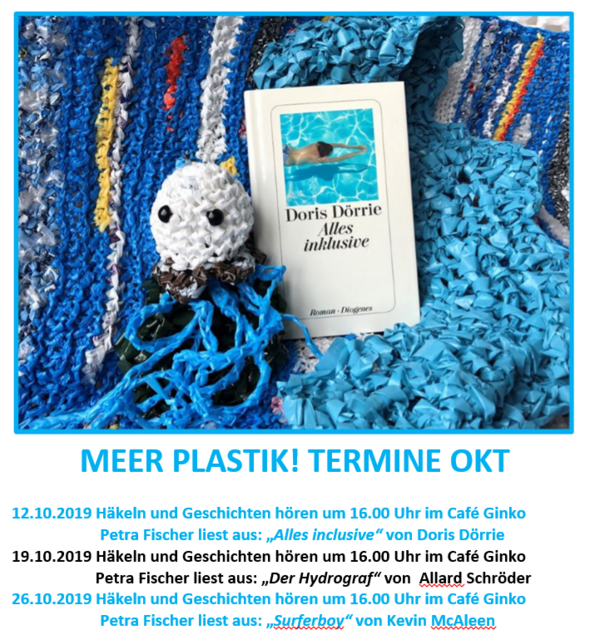 Das Sonderprojekt läuft von Oktober bis Februar wöchentlich am Samstag. Wir häkeln aus Plastiktüten ein Plastikmeer und hören Geschichten. Weitere Termine werden noch bekanntgegeben.