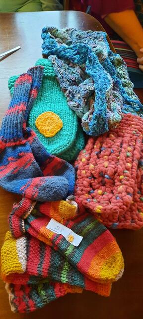 "Wir machen uns auf die Socken" und wie Ihr seht auch an die Socken. Noch vieles mehr - Mützen, Schals, Stirnbänder, Ponchos, Handschuhe sind schon fertig und warten auf neue Besitzer. Die ARD fragt in ihrer Themenwoche: "Was hält unsere Gesellschaft zusammen?" Eine Antwort, die wir vom Bündnis "Gespür fürs WIR" bieten ist: "Gemeinsames Stricken, Häkeln" im Café Ginkgo, von-Eichendorff-Str. 1 in Königsbrunn, jeden Freitag von 14.30 Uhr bis 17.00 Uhr.