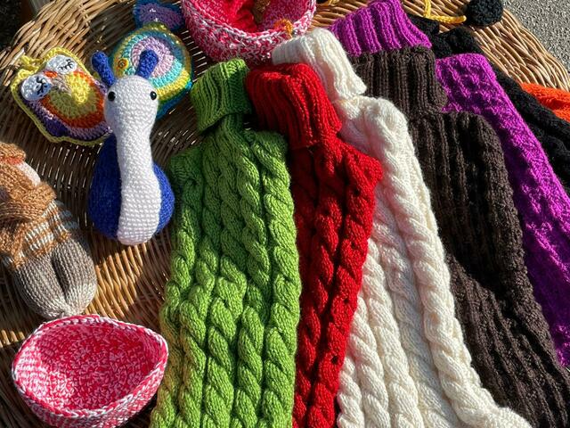Am Samstag, den 02.11.24 werden - nur bei trockenem Wetter - handgefertigte Strick- und Häkelarbeiten auf dem Königsbrunner Wochenmarkt angeboten. Die zum Teil aus gespendeter, zum Teil aus gekaufter Wolle erstellten Handarbeiten erschaffen die Mitwirkenden der regelmäßig stattfindenden Strick- und Häkelrunde. Dort gestalten die Teilnehmer:innen mit viel Freude am Tun und im gemeinsamen Austausch unterschiedliche Projekte. Einen Teil dieser Projekte kann man am Stand selbst begutachten. Im Angebot sind Jacken, Mützen, Pullis, Ponchos, Schals, Socken, und noch vieles mehr. All das kann gegen Spenden am Samstag zwischen 9-12 Uhr erworben werden.